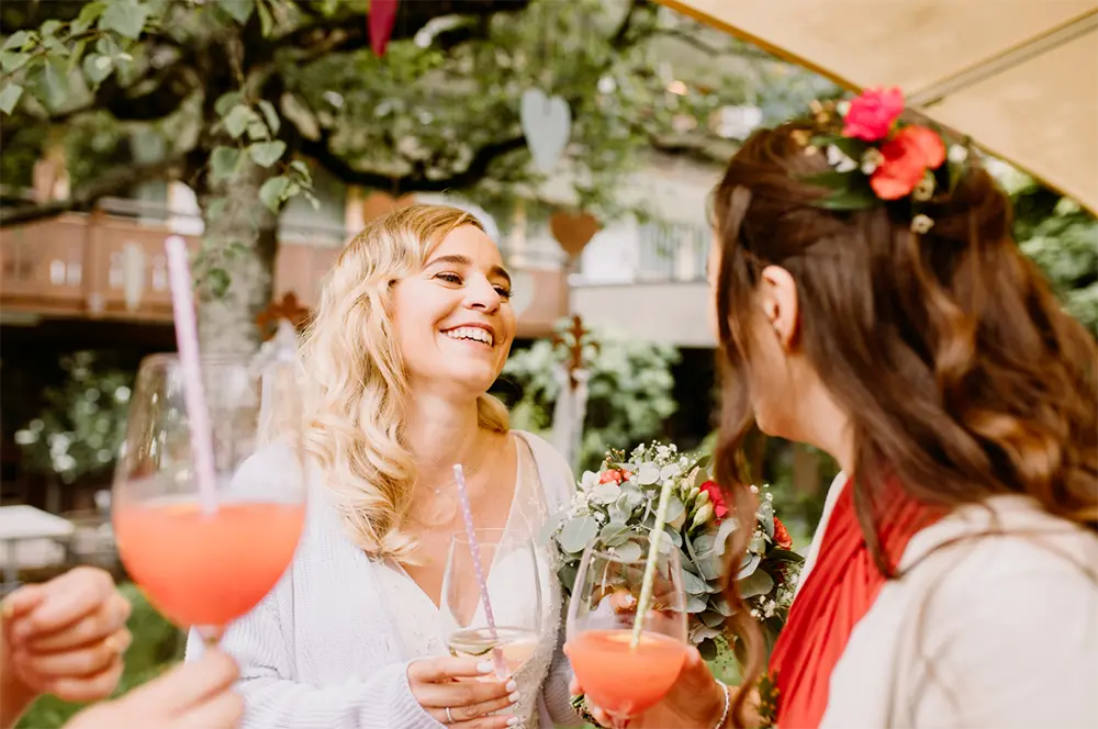 - Der Empfang: Starte Deine Feier mit einem Aperitif-Buffet und einer feinen Snackauswahl. Wähle zwischen unserem grünen Gastgarten an warmen Tagen oder der Kaminlounge vor knisterndem Feuer im Winter.