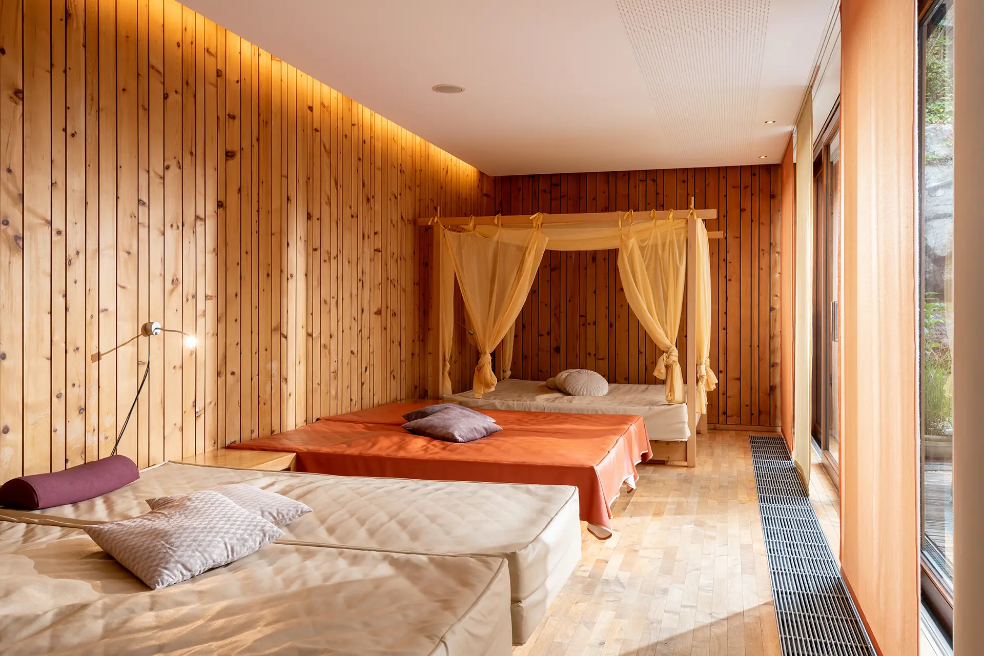 - Entspanne auf unseren Wasserbetten und genieße dabei den Blick auf die umliegenden Berge.