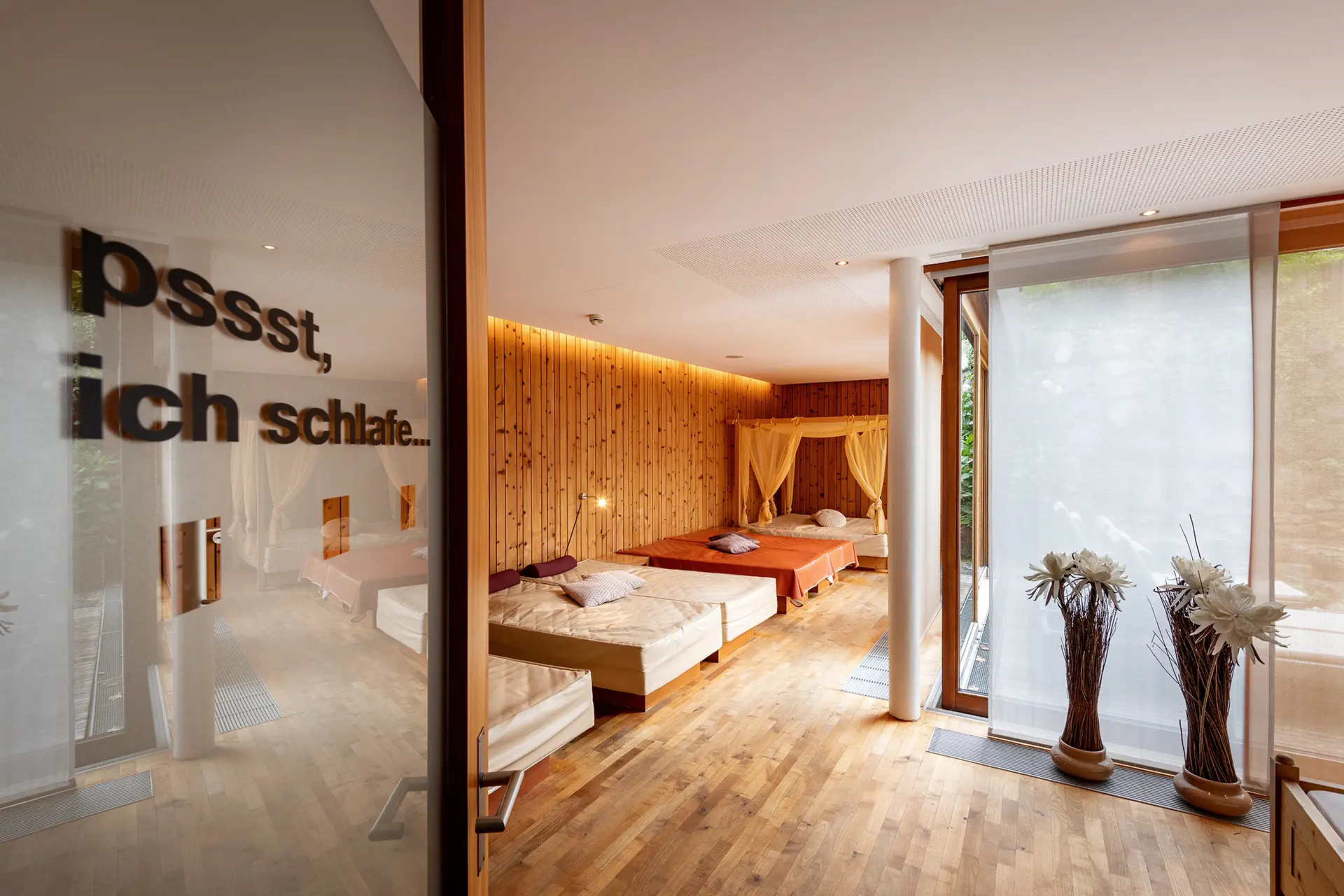 Nach einem Tag in der Natur oder einfach, weil Du es Dir verdient hast: Unser Wellnessbereich ist Dein persönlicher Ort der Ruhe und Regeneration. Hier tankst Du neue Kraft und erlebst echte Entspannung.